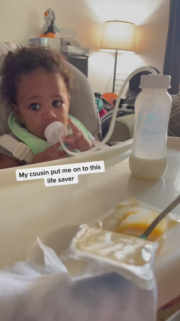 Designed with a flexible straw and secure grip, Moomifeed™ lets your baby self-feed comfortably without constant tilting or adjusting.